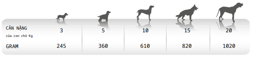 Số lượng có thể được điều chỉnh tùy theo kích thước, hoạt động thể chất và điều kiện sống của động vật. Khẩu phần khuyến nghị hàng ngày được nêu trong bảng có thể được chia thành hai bữa ăn. Đảm bảo luôn có sẵn nước sạch, trong lành. Khi sản phẩm này thay thế một loại thức ăn và/hoặc chế độ ăn khác, nên áp dụng dần dần trong khoảng thời gian ít nhất 1 tuần. Lưu trữ ở nơi khô thoáng. Sau khi mở nắp bảo quản trong tủ lạnh và sử dụng trong vòng 3 ngày.