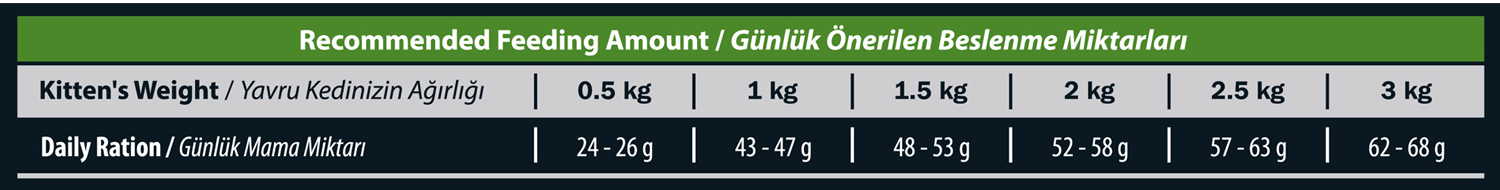 Thức ăn khô cho mèo siêu cao cấp với công thức cân bằng và hoàn chỉnh dành cho mèo con. Dành cho tất cả giống mèo từ 2 tháng đến 12 tháng tuổi. Thể trọng từ 0,5kg – 3kg.